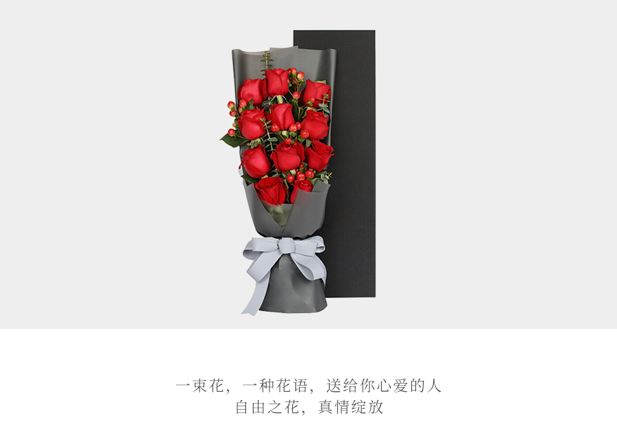 Cherish珍爱鲜花系列11枝红玫瑰+相思豆枪炮礼盒— 永恒爱恋