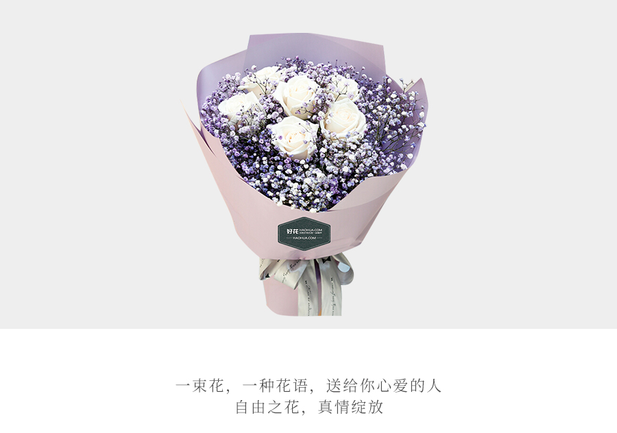Friendship挚友鲜花系列6枝白玫瑰+紫满天星— 唯美期待
